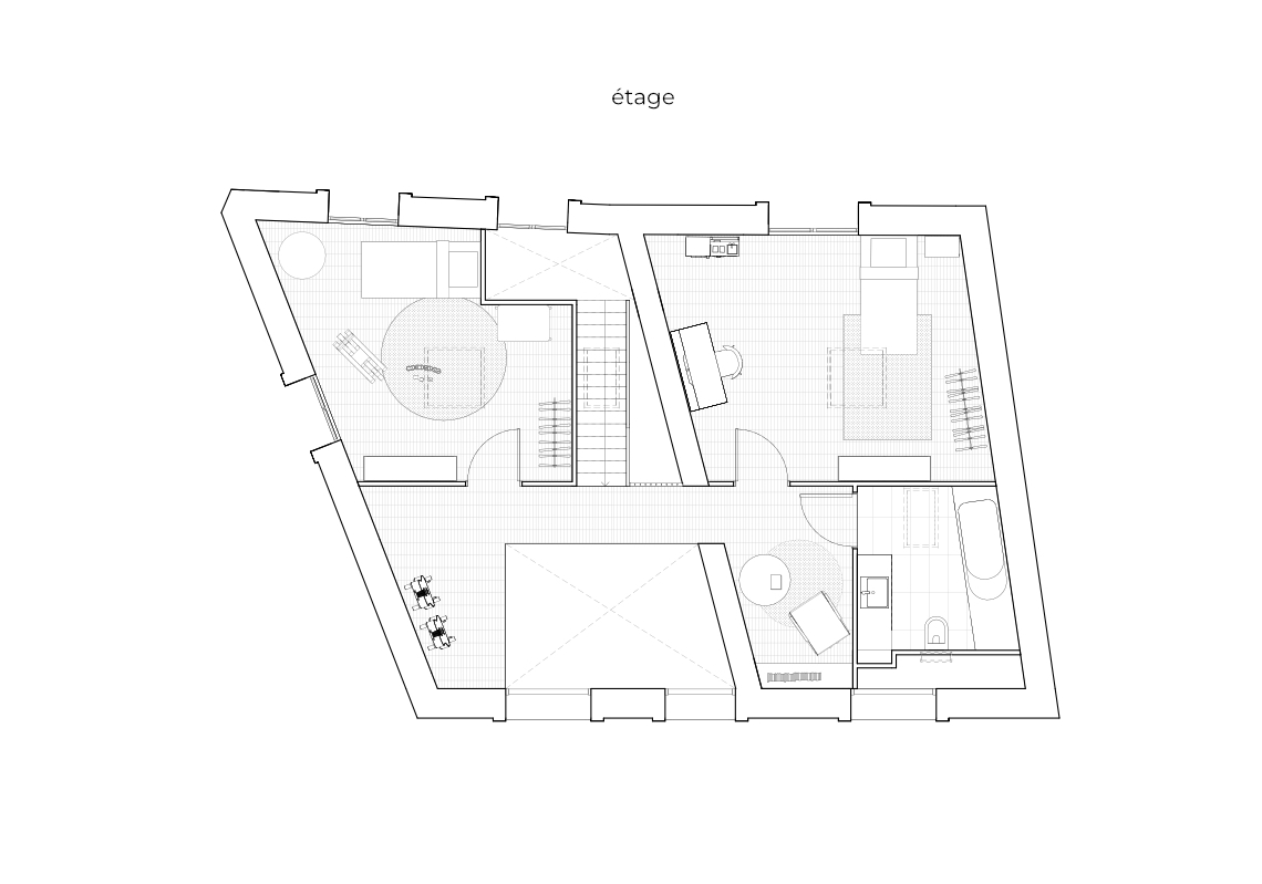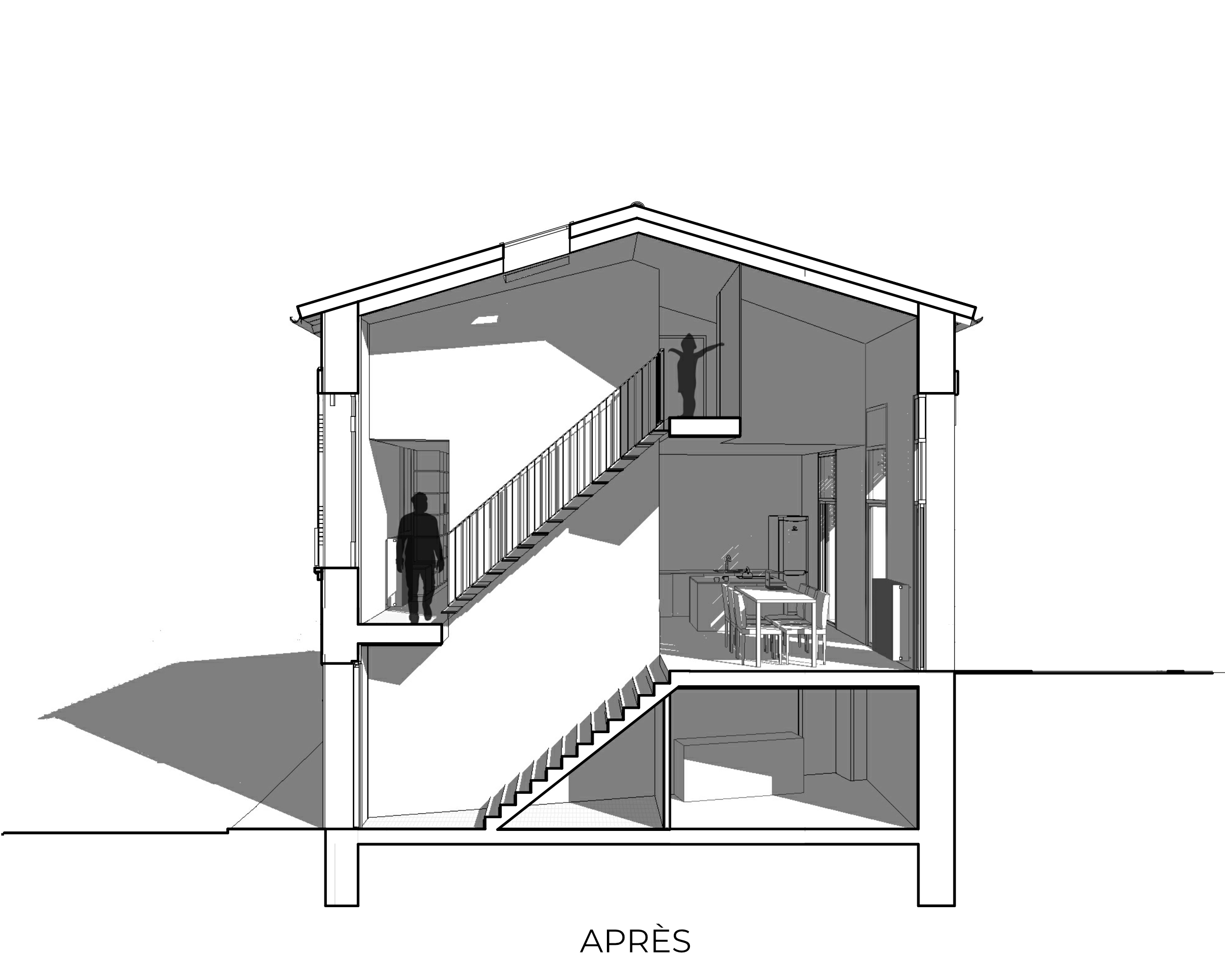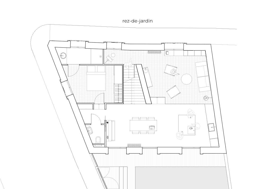 H003 / Restructuration de deux commerces et d’un logement en maison de ville / ToulouseMaîtrise d’ouvrage privée / Livré en 2020 / 150m2 de surface / Cout HT 400 000€ / Mission complète